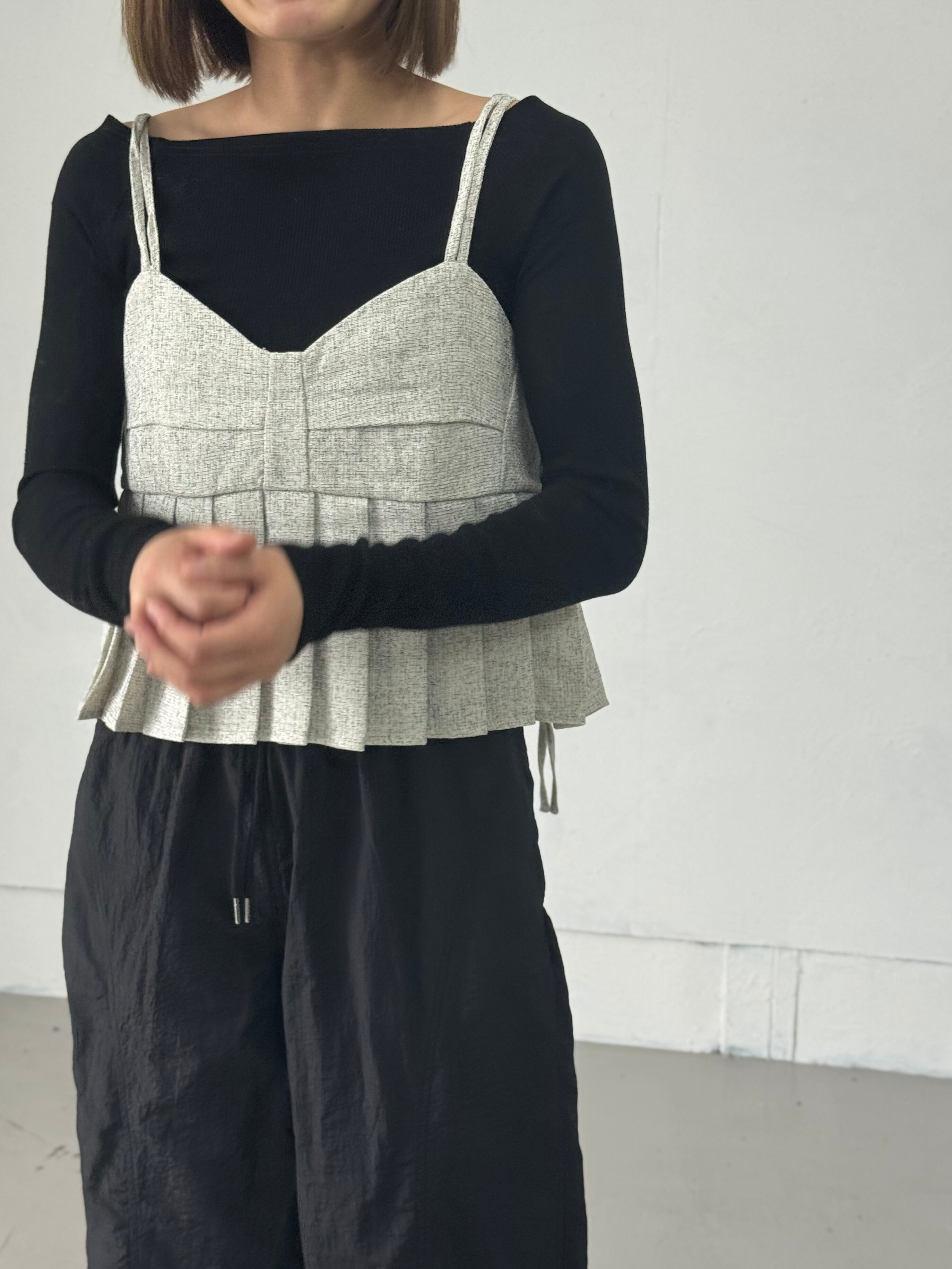 繊細なプリーツ生地が女性らしさを引き立てます。