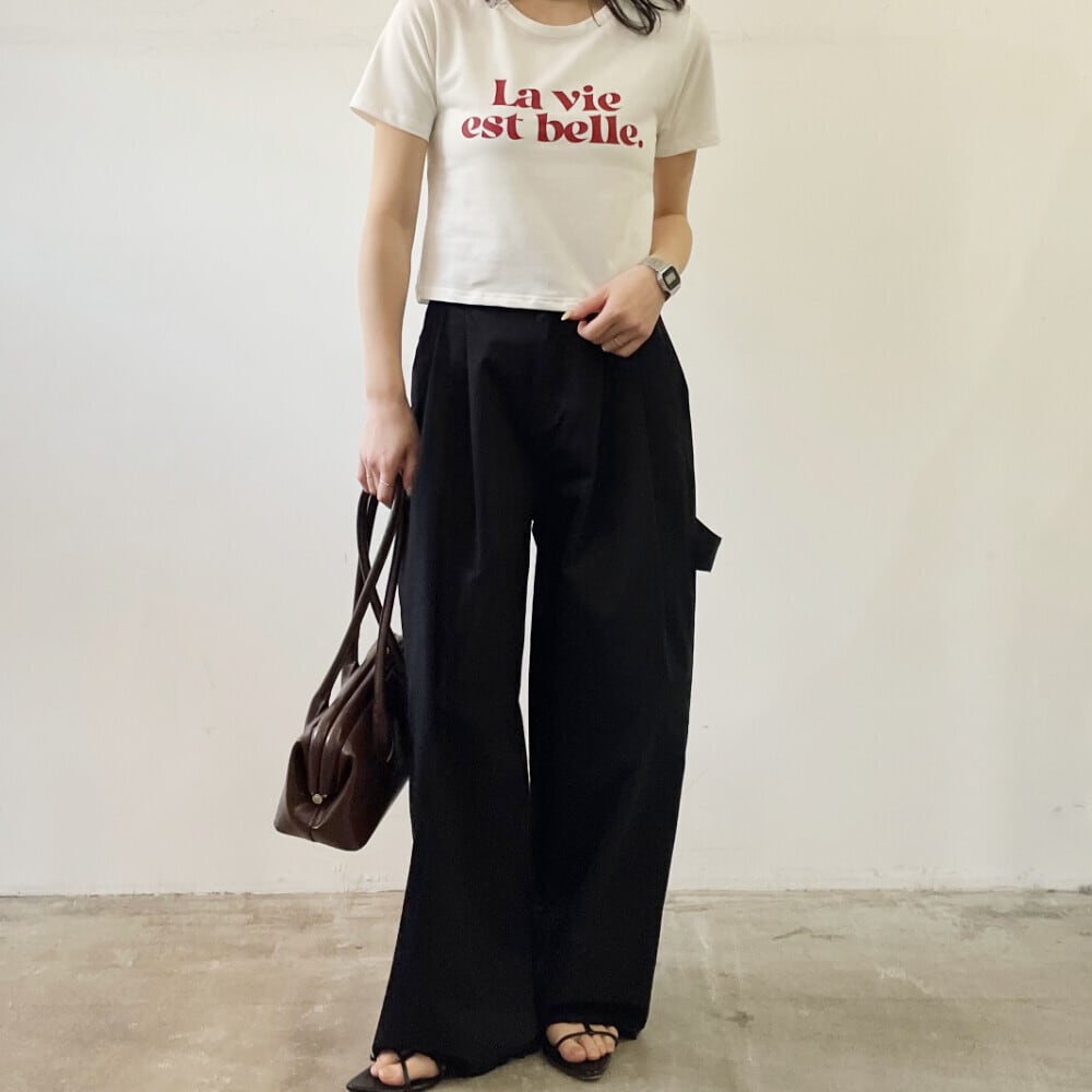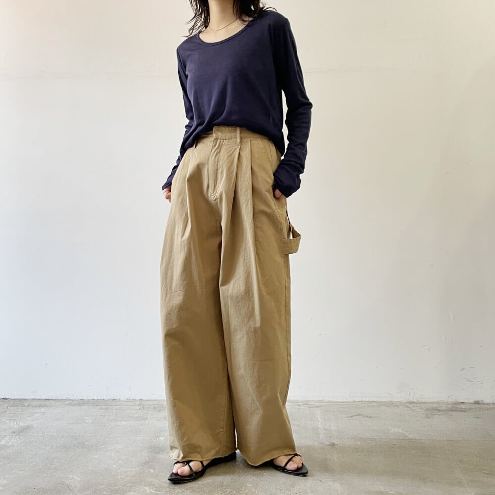 ・脚のラインを拾わないワイドシルエットがこなれ感を演出し、動きやすさも兼ね備えています。