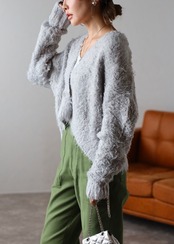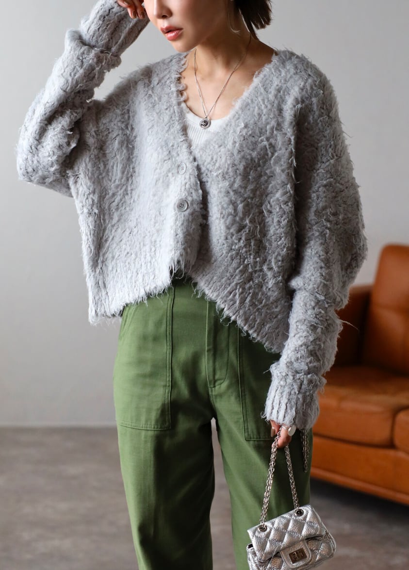 暖かみのあるブークレーニットが可愛いショートカーディガン